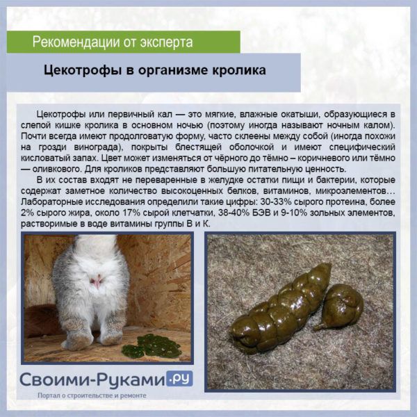 Зверніть увагу: проте, роблячи прибирання в клітинах у кроликів, потрібно пам'ятати, що ці тварини є копрофагія. Іншими словами, вони повинні поїдати свій послід, точніше, перший послід після вживання їжі, з яким виходить велика кількість поживних елементів. Цей перший послід називається цекотрофамі, і щоб ваш вихованець нормально існував, вони повинні потрапляти знову в його травну систему.
