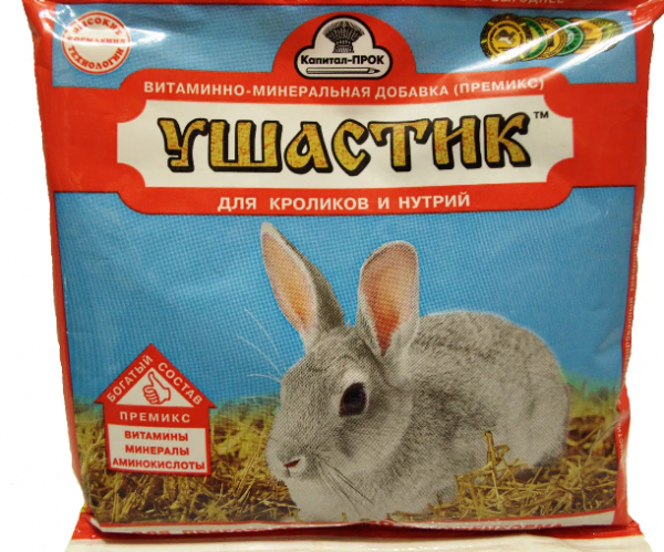 У ветеринарних аптеках можна придбати вже готові комплекси для кроликів. У складі преміксів присутні і інші допоміжні компоненти для активного зростання особин, такі як кальцій, фосфор і марганець.