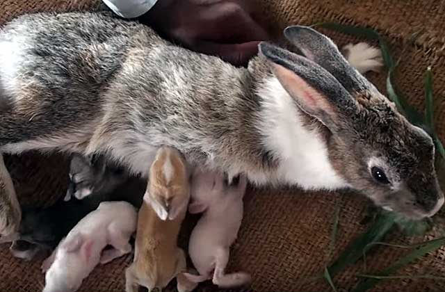 На світло кроленята з'являються абсолютно безпорадними, вага коливається в межах 40-80 м Але вже у віці 4 тижнів маса тіла збільшується мінімум в 10 разів. При достатній кількості молока у самки дитинчата починають самостійно їсти не раніше, ніж в 21 день від народження.