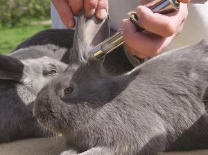 Початківцям заводчикам краще звернутися за допомогою до іншої людини, коли проводиться перша вакцинація, для утримання кролика в нерухомому стані.