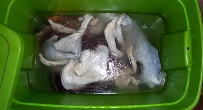 Коли шкурки відмочують, вони плавають в просторій посуді. Щоб відразу забезпечити чистоту шкурок, їх відмочують з пральним порошком, для літра рідини знадобиться півтора кілограма порошку.