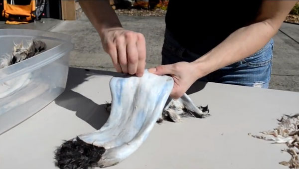Готове сировина повинна вільно курсувати в розчині і не спливати. Якщо в паховій області шерсть легко висмикується, то шкурка готова і цю стадію потрібно припиняти.