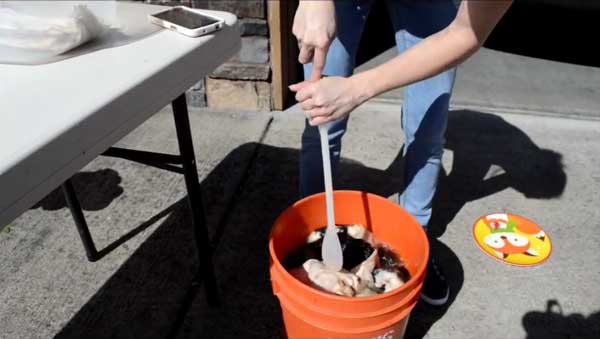 Промиті і знежирені вироблені шкурки потрібно опустити в розчин на 12 годин так, щоб вони повністю покрилися рідиною. Один раз за годину їх треба перемішувати.