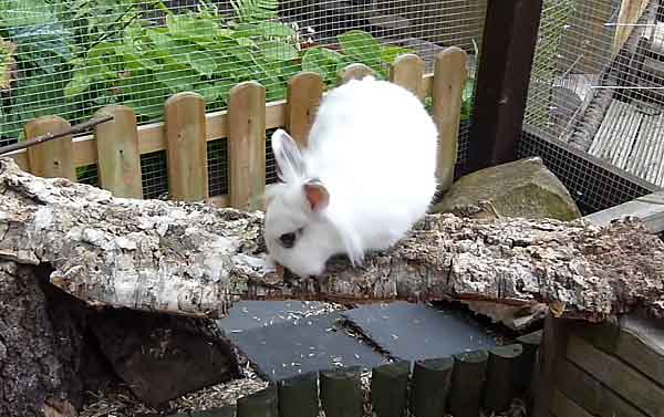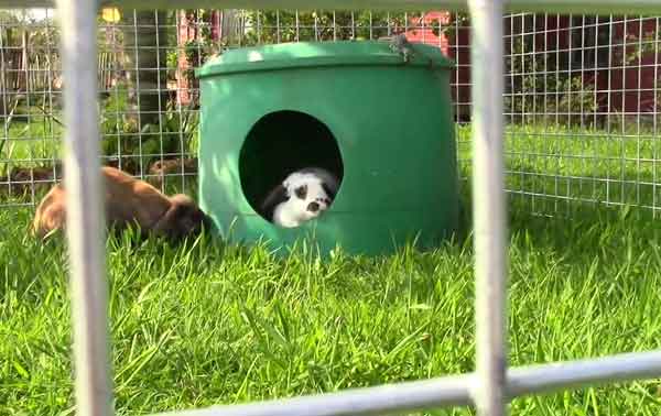 Вольєр зазвичай повідомляється з будиночком і сараєм, де постійно живуть кролики.