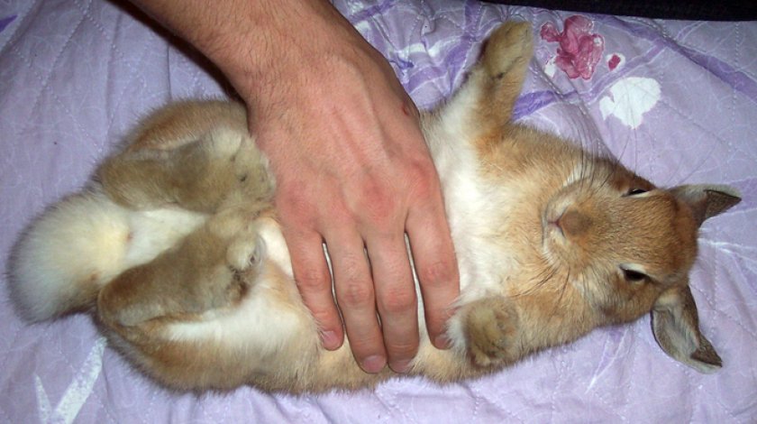 Покладіть кролика до себе на коліна, повернувши його на спину, і масажуйте йому живіт, зачекайте хвилину – незабаром тварина випорожниться.