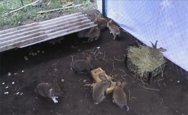 - коли вольєр готовий, необхідно правильно його заселити. Всіх кроликів запускають туди разом, згодом вони будуть поповнюватися народилися там кроленятами;