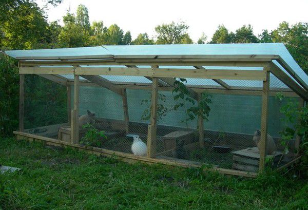 - простота в догляді: чистити вольєр необхідно рідше, ніж клітини. Можливо зробити такий вольєр на дачній ділянці, займаючись доглядом за кроликами тільки по вихідним;