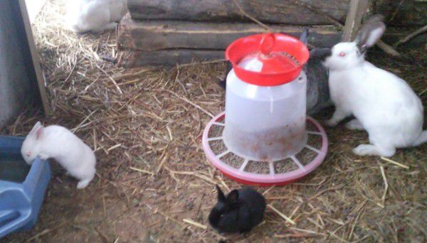 Також в вольєрі повинні бути поїлки і годівниці, в кількості, що відповідає кількості кроликів. Їх необхідно закріпити, щоб активні кролики їх не перевернули.