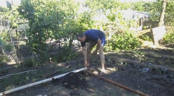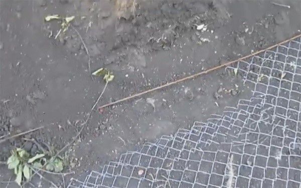 Від опори до опори викопується траншея для стінок вольєра, досить глибока, щоб кролики не зробили підкоп.