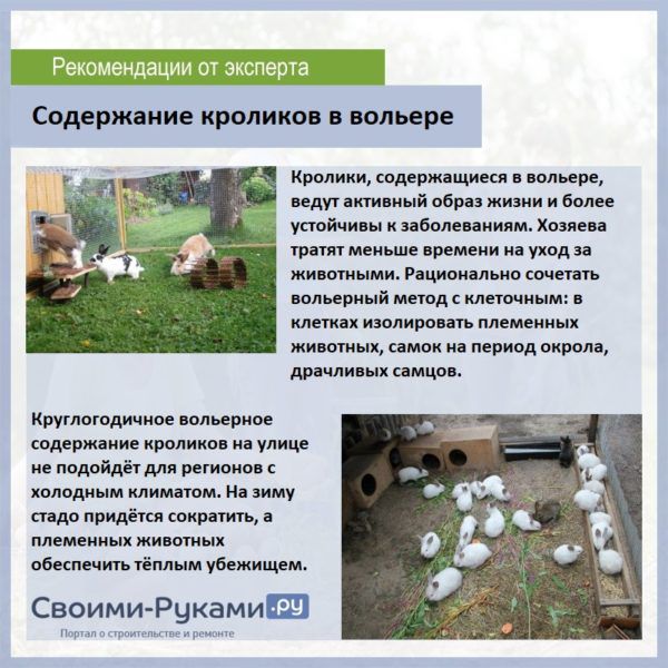 «У вольєрі не повинно бути якихось закутків, куди людині важко буде потрапити. Кролики можуть залізти кудись, навіть здохнути там можуть. Тому потрібно, щоб усі місця були Популярні і доступні, щоб можна було туди легко залізти »(кролівник І. Степанов).
