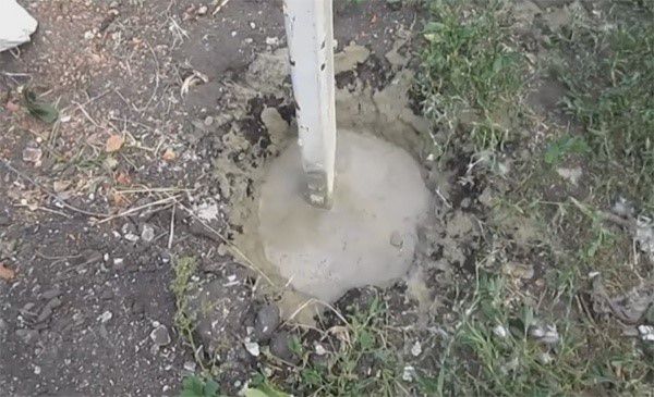 Після установки опор в підготовлені поглиблення, засипте їх грунтом або залийте підготовленим заздалегідь бетоном.