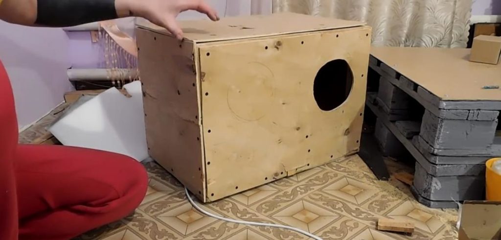 Крок 3. В одній стінці необхідно зробити лаз для самки, тому посередині слід накреслити коло, а потім вирізати її. Не варто робити лаз занадто низько, інакше кроленята будуть випадати з маточника. Кришку маточника необхідно закріпити на меблеві петлі, щоб її можна було в будь-який час відкрити.
